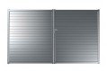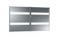 Ce portail à deux vantaux est composé de lames pleines horizontales de différentes tailles : 83x16 mm et de 157x16 mm. Notre portail Nameco se décline en largeurs 3m ou 3m50 pour une hauteur de 1m60.