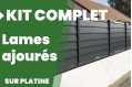 Le kit est constitué de lames en aluminium de 1800x152x18 mm avec simple entretoise, de poteaux 70x70 mm, de platines et visseries pour poteau, d'un kit de fixation pour platine, d'embouts pour poteau 70x70 mm, de sachets de cales de verrouillage anti-soulèvement, de gabarit de pose en bois et de parecloses de finition pour poteau 70x70 mm.